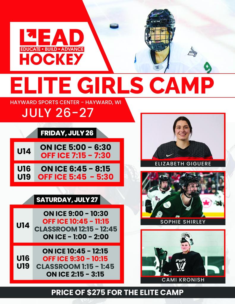 U14, U16 and U19 Elite Girls camp. We expect the girls to have A-AAA experience. We will be focused on helping athletes prepare for the remainder of their off-season and understand the ways to improve to achieve their long term goals. The program will be modeled after our training for Division I, III and Professional skaters which has had proven results at the Jr/College levels. We will cover skating, puck skills, Hockey IQ as well as provide a highly competitive environment to help our athletes prepare to achieve their short term and post HS goals.